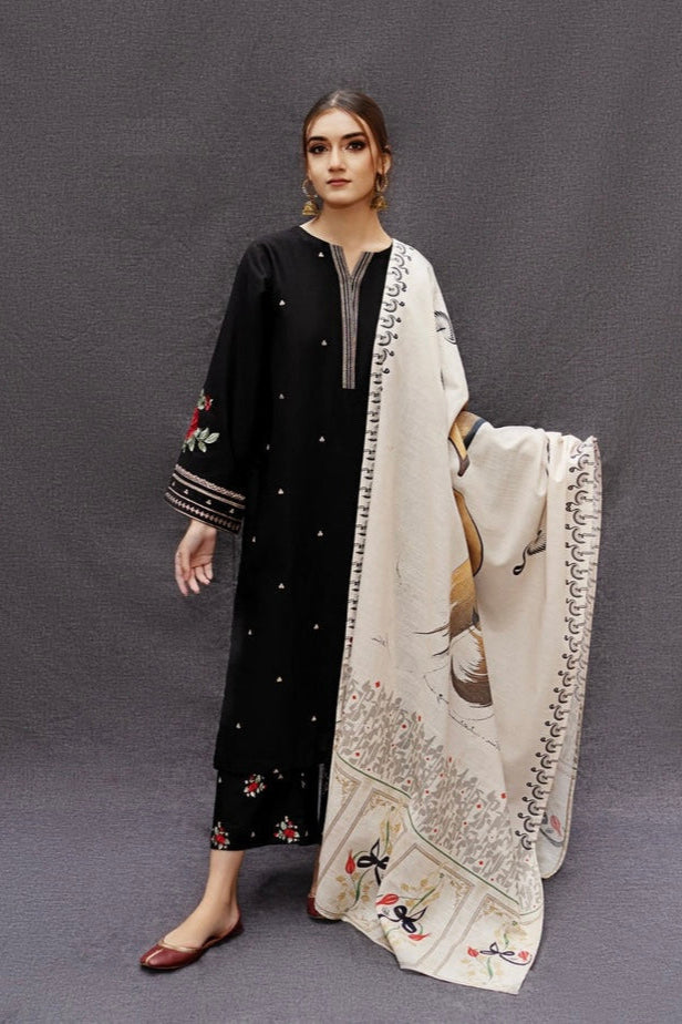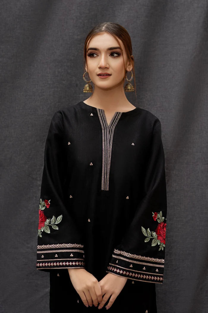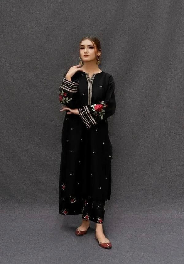 Embroidered dhanak front with embroidered sleeves, and a plain dyed dhanak back